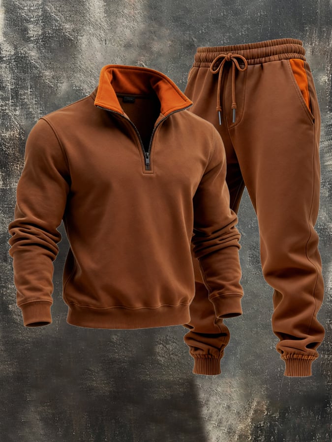 Albert® | Herren Retro Stitching Kontrastfarbe Halbzip Casual Sweatshirt Anzug